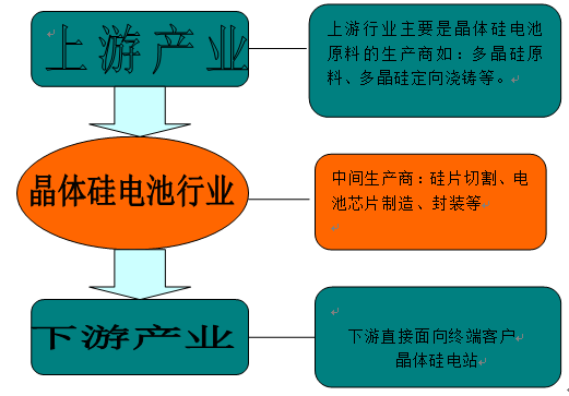 核心提示:晶體硅太陽能電池產業鏈基本由五個環節構成,分別是高純多晶硅原料生產(silicon)、單晶硅拉制或多晶硅定向澆鑄(Ingot)、硅片切割(wafer)、電池芯片制造(cell)、組件及系統(module-system)封裝與應用。其中,進入晶體硅太陽能電池產業鏈基本由五個環節構成,分別是高純多晶硅原料生產(silicon)、單晶硅拉制或多晶硅定向澆鑄(Ingot)、硅片切割(wafer)、電池芯片制造(cell)、組件及系統(module-system)封裝與應用。其中,進入壁壘最高的環節為太陽能級高純多晶硅原料生產,由于其制造過程資金密集、技術密集、高耗能、回收周期長的特點,目前基本上被國際上7大廠家壟斷。其次,產業鏈中游的太陽能電池芯片(cell)制造進入壁壘較高,其制造過程主要是技術密集、工藝和設備要求高,電池芯片轉換效率的高低決定了處于該環節企業的盈利能力。另外,硅片切割環節由于切割厚度以及破片率等方面的要求較高,進入也存在一定的壁壘。相對來說,單晶硅拉制或多晶硅定向澆鑄(Ingot)、組件及系統(module-system)封裝與應用進入壁壘較低。