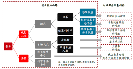 對過去10年票房增長的動能進行拆分,發現2014年以前主要的增長動力都來自銀幕數的擴張,而其他如上座率提升等因素貢獻較小。而從2014年底開始,單塊銀幕的產出開始顯著性上升,判斷電影行業發展的下半場動力將由粗放式擴張切換至經營效率的提升,單銀幕、單場、單座的產出或將持續上升,上座率也有進一步提升的空間。