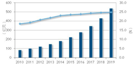 銀行核心業(yè)務(wù)系統(tǒng)解決方案市場(chǎng)規(guī)模及增長(zhǎng)率,2010-2019