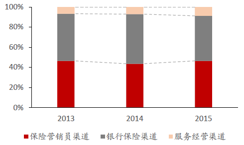 首年期交增加,期限結構改善。從業務結構上看,2015年首年期交保費占總保費占比均大幅提升,中國太保、新華保險、中國人壽、中國平安首年期交占總保費收入分別為26%、31%、17%、27%,較去年分別提高了8個、3個、3個、6個百分點。與此同時,交費期在十年期及以上期交產品保費收入增多。以新華保險為例,2015年個險代理人和服務經營渠道交費期在十年期及以上的保費分別同比增長44%和67%,占兩渠道新單期交保費比例分別達到89%和80%,較去年提高4個和6個百分點。中國人壽2015年首年期交保費增速32.9%,創股改上市以來新高;十年期及以上首年期交保費增速達到25.4%,創七年來新高,占首年期交保費保費52.6%。在打造內含價值的目標下,各大險企必將集中力量繼續加強長期期交產品的研發和銷售。