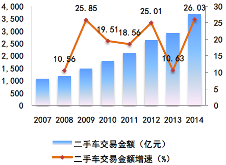 二手車交易金額及增速
