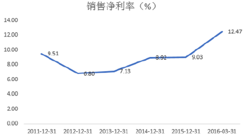2011-2016年中國紡織服裝行業銷售凈利率