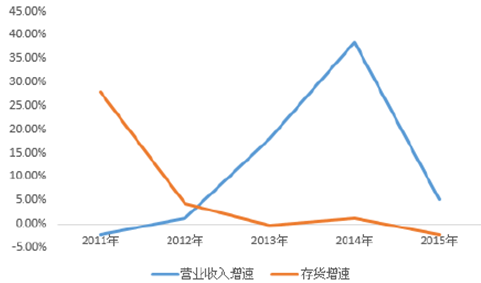 2011-2015年中國戶外休閑營收與存貨增速匹配