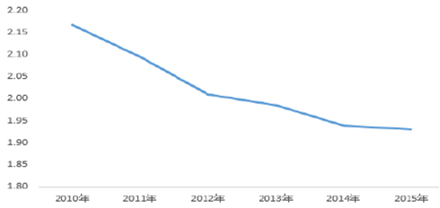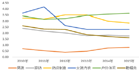 2010-2015年中國紡織服裝存貨周轉率