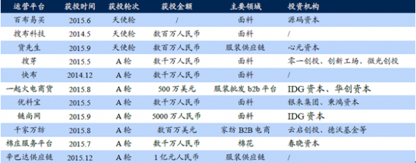 由于互聯網時代終端消費趨勢的快速變化,傳統紡織產業鏈中各個企業之間交易流通存在很多痛點需要解決,因此產業供應鏈的整合貫通應聲站上了投資風口。紡織服裝電商類的一級市場融資額度持續攀升,大多都是針對行業痛點進行的布局。