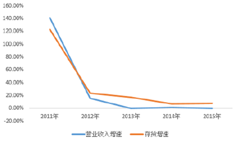 2011-2015年中國鞋帽類營收與存貨增速匹配