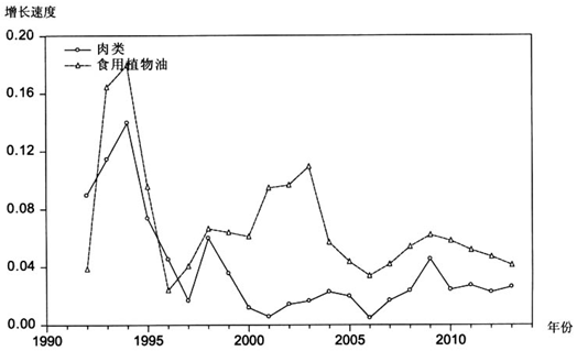 1990-2014年植物油和肉類增長(zhǎng)速度