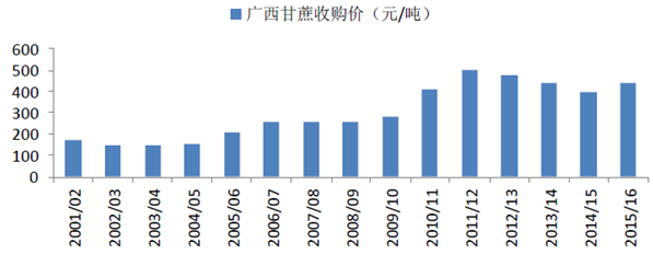 2001-2016年廣西甘蔗收購價