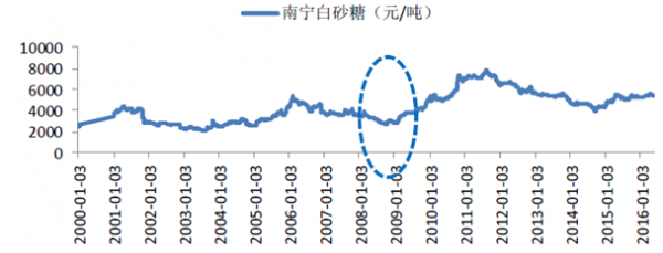 2000-2016年中國白糖價格走勢