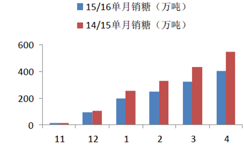 15/16榨季糖月銷售不如去年同期