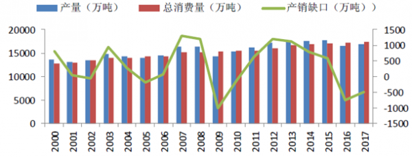 2000-2017年全球糖業產量、消費量分析