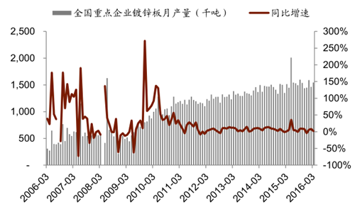 核心提示:鋅的主要用途是鍍鋅鋼板(廣泛應用在基建、汽車以及家電行業) 。2016 年 1-3 月,重點企業鍍鋅板產量累計達到約 460 萬噸,同比上升 5%,而當月產量的同比增速 2015 年底至 2016 年第一季度呈現出放緩的趨勢。上海鋅庫存在鋅的主要用途是鍍鋅鋼板(廣泛應用在基建、汽車以及家電行業) 。2016 年 1-3 月,重點企業鍍鋅板產量累計達到約 460 萬噸,同比上升 5%,而當月產量的同比增速 2015 年底至 2016 年第一季度呈現出放緩的趨勢。上海鋅庫存在 2016 年第一季度的持續上升也在一定程度上反映了這種趨勢。不過,上海鋅庫存最近有所回落,截至 2016 年 5 月 27日,上海鋅庫存相對年初累計上升約 15%至約 23.1 萬噸,仍然維持在較高的水平。