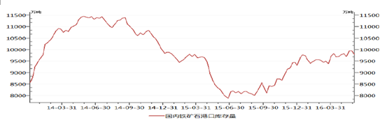 2014-2016年6月國內主要干散貨運港口鐵礦石庫存總量