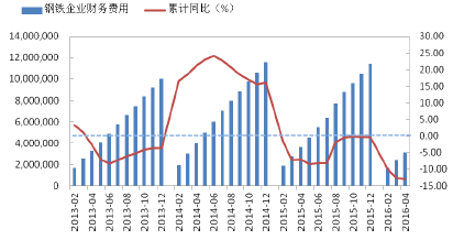 鋼鐵行業企業財務費用月累計值(單位:萬元)