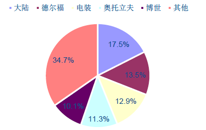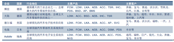 傳統一級供應商在ADAS領域保持優勢地位。大陸、德爾福、電裝、奧托立夫、博世這5家傳統優勢公司2013年全球乘用車ADAS市場份額分別為17.5%、13.5%、12.9%、11.3%和10.1%,總計超65%。其余份額被法雷奧、天合、麥格納、海拉等企業占有。