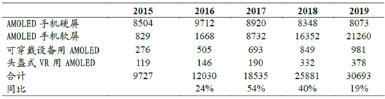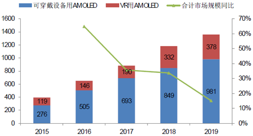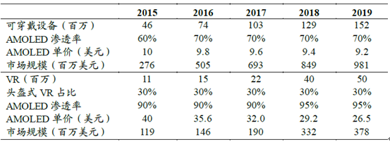 2015-2019年可穿戴和VR用AMOLED市場規模測算