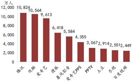2015 年中國十大視頻類應(yīng)用(年平均活躍用戶)