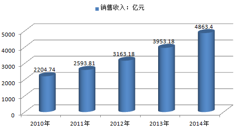 2010-2014年我國肉制品加工行業(yè)規(guī)模以上企業(yè)銷售收入(億元)
