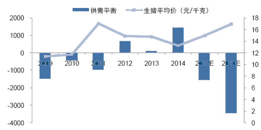 預(yù)計15、16年生豬供求呈現(xiàn)短缺局面