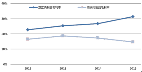 行業(yè)龍頭雙匯和雨潤的肉制品業(yè)務(wù)毛利率水平