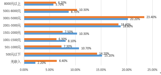 中國(guó)網(wǎng)民個(gè)人月收入結(jié)構(gòu)