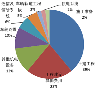 對已有軌道交通和三年計劃中投建計劃進行估算,國內平均每公里軌道投資規模約 7 億元;軌道交通建設成本前三分別為土建工程、工程建設其他費用及車輛機甴設備,其中土建工程和工程建設成本合計占比超 6 成。因此軌道交通建設力度加大,直接拉動建筑行業需求。