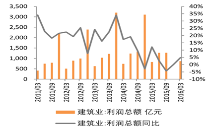 受益固定資產投資數據改善,建筑行業 GDP 增速環比轉好。2016 年 1 季度建筑業 GDP 同比增速7.8%, 環比 2015年 4 季度提升 0.5個百分點; 同期行業實現利潤總額約 867億元, 同比增長 4.81%,同比增幅下降,環比改善。