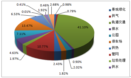 截至 2016 年3月 PPP 項目市政工程投資額細分領域占比