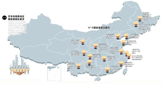 首先,是國際級新區的建立。自1992年第一個國家級新區——上海浦東新區成立至今,國務院共批復了17個國家級新區,其中11個是2014年以來獲批的,批復速度加快,其中2014年和2015年分別批復了5個,2016年至今已批復1個。而1992年至2013年的22年間,一共批復了6個。分別是:上海浦東新區、天津濱海新區、重慶兩江新區、浙江舟山群島新區、甘肅蘭州新區、廣東南沙新區、陜西西咸新區、貴州貴安新區、青島西海岸新區、大連金普新區、四川天府新區、湖南湘江新區、南京江北新區、福州新區、云南滇中新區,哈爾濱新區以及長春新區。這些國家級新區數華東和西南地區最多。據不完全統計,全國還有至少9個城市有意向打造國家級新區,分別是:武漢長江新區、江西昌九新區、石家莊正定新區、南寧五象新區、合肥濱湖新區、中山翠亨新區、沈陽沈撫新區、濟南黃河新區、襄陽東津新區。
