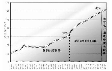 根據國家統計局數據,2015年中國城鎮化率達到56.10%。而發達國家的城市化水平為75%左右。而根據有關學者的研究,當城市化水平達到飽和值的50%時,城市化速度達到極限,并且以此為分界點,此前加速此后減速。