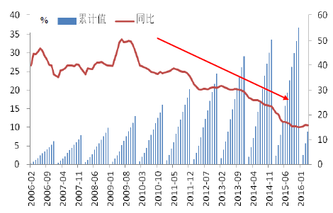 2016年1-4月份,固定資產投資13.26萬億元,同比名義增長10.50%,增速比1-3月份回落0.2個百分點,與2015年同期比,增速下降了1.5個百分點。而民間投資下降更快,同期民間固定資產投資82393億元,同比名義增長5.2%,增速比1-3月份回落0.5個百分點(注:1-3月份民間固定資產投資同比名義增長5.7%)。民間固定資產投資占全國固定資產投資(不含農戶)的比重為62.1%,比去年同期降低3.2個百分點。