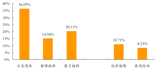 核素藥物歸于放射藥物管理,生產企業需具備《放射性藥品生產許可證》,具有極高的壁壘,有一定稀缺性。全國七千余家藥品生產企業中,生產放射性藥物的企業僅有約20家,多數是過去各大同位素研究院下屬事業單位改制而來,其中具備基礎研發能力的單位或企業僅有3家。因此,核素行業競爭格局非常好,大量核素藥物屬于獨家品種,最多也是三到五家企業競爭,企業利潤率水平遠高于醫藥行業。