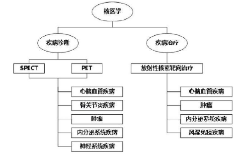 核素藥物主要分為診斷用核素藥物和治療用核素藥物,在核醫學幾十年的發展中,診斷用核素藥物的發展遠快于治療用核素藥物,但治療用核素藥物的前景更加廣闊,日益受到重視。目前我國國家藥品標準收載的核素藥物已有幾十種,用途覆蓋心腦血管顯像、腎功能檢查、甲狀腺疾病診斷和治療、腫瘤治療、類風濕治療等領域。