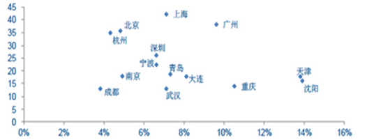 北京、上海、杭州、廣州和深圳五個城市,是中國各大城市里頭商場租金尚可的城市。一些二線城市的商業(yè)氛圍雖然遠遠不如這些城市,但卻同樣供給大量的商場用地。