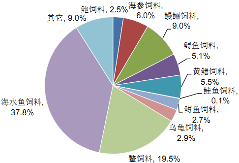 特種水產(chǎn)配合飼料現(xiàn)有結(jié)構(gòu)中,海水魚配合飼料、鱉配合飼料、鰻鱺配合飼料、海參配合飼料、黃鱔配合飼料和鱘魚配合飼料是占比最大的六個品種,合計在全國特種水產(chǎn)配合飼料中的占比超過80%。