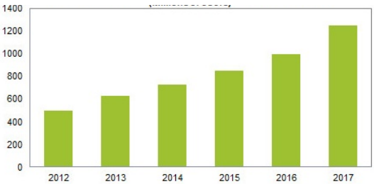 2012-2017 年全球個人云存儲用戶規模增長(百萬人)