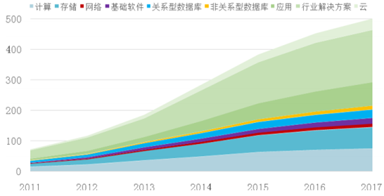 2011-2017 全球大數據細分市場規模增長及預測(億美元)