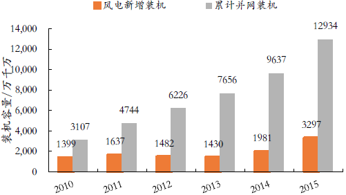 2010-2015年中國風電裝機數據統計(單位:萬千瓦)