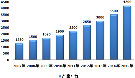 2007-2015年中國水平定向鉆機(jī)行業(yè)產(chǎn)能情況