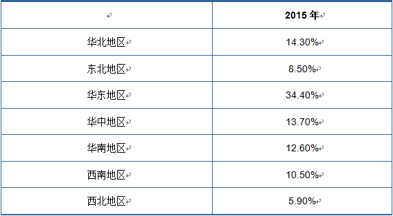2015年我國(guó)水平定向鉆機(jī)市場(chǎng)消費(fèi)結(jié)構(gòu)(按區(qū)域):%