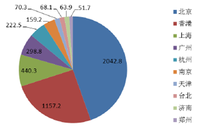 2015年藝術品成交額城市TOP10對比圖