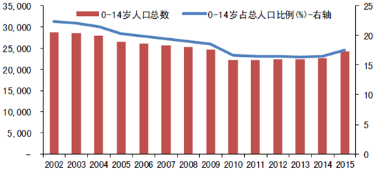 兒童醫療領域存在供不應求矛盾,但這也意味著行業存在很大上升空間。目前,兒童醫療領域存在的供應不足主要體現在藥品、藥企、藥師領域,二孩放開后,這一矛盾有可能進一步凸顯,但這也意味著,醫療領域有很大的增長空間。從需求側看,目前兒童人口占比為16.6%,二胎放開后,這一比例有望持續增長。從供給側看,兒童藥品、藥企與醫師的供給不足:第一,兒童用藥市場遠未飽和,我國目前醫藥市場規模約為12413億元,兒童藥市場規模僅占其中的4%,而兒童占全國人數約16.6%;第二,兒童藥企數量不足,6000 多家藥廠中專門生產兒童藥的企業只有10 多家;第三,兒童專業用藥較少,截至2013年1月,國產藥品18萬余條批文中專用于兒童藥品的僅3000多條;第四,兒科醫師缺口巨大,《2015年中國衛生統計年鑒》顯示,2014年兒科醫師人數約為11.2萬,而第六次全國人口普查顯示14歲以下兒童有2.2億余人,平均每千名兒童只有0.5名醫師,而美國是1.46。
