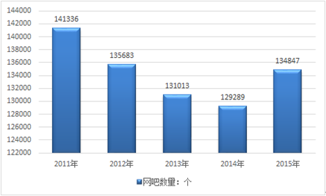 2011-2015年我國網吧數量統計圖