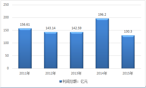 2011-2015年我國網吧行業利潤總額統計圖