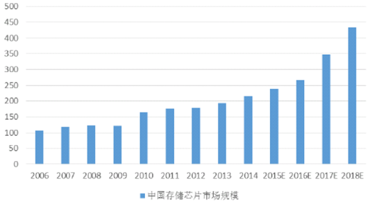 中國存儲芯片市場規模將保持穩定增長態勢(單位:億美元)