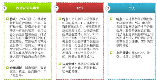 公司總員工裁員比例裁員人數EMC70,00015%~20%10,000~14,000VMWare17,00010%~15%1,700~2,500HP Enterprise240,00030%72,000IBM379,00025%95,000Cisco72,00020%14,000Juniper8,80015%1,300Oracle132,00020%26,000Microsoft118,00015%18,000Symantec19,00015%2,800F5 Networks4,50010%450政府全力推動云計算發展。經濟增長模式轉型是當前政府最重要的執政目標,云計算提供的商業模式革新與政府訴求不謀而合,理所當然受到政府大力支持和鼓勵。我國的云計算產業發展與各級政府的支持密不可分,在信息化浪潮下政府希望布局云計算占據發展先機,因此,云計算產業的發展被各級政府和相關部門給予了多項政策優惠和支持。政府在云計算產業鏈的構建和運作上扮演了引導者的角色,目的是使參與企業認識到產業鏈價值的全局性,通過產業鏈各環節之間的價值交換與信息反饋,促進產業鏈間價值流和信息流的流通,使整個產業發展進一步走向成熟和規范。