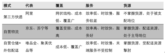 電商物流模式對比
