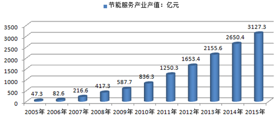 “十二五”是中國節能服務從業隊伍蓬勃發展的黃金5年。2015年全國從事節能服務業務的企業總數達到5426家,比“十一五”期末增長了近6倍;行業從業人員達到60.7萬人,比“十一五”期末的17.5萬人增長了近2.5倍。節能服務產業總產值從2010年836.29億元增長到3127.34億元,年均增長率為30.19%;合同能源管理投資從2010年287.51億元增長到1039.56億元,年均增長率為29.31%。“十二五”累計合同能源管理投資3710.72億元,形成年節能能力1.24億噸標準煤,減排二氧化碳3.1億噸。