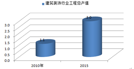 2010年8月5日,中國建筑裝飾協會六屆五次常務理事會通過《中國建筑裝飾行業“十二五”發展規劃綱要》,根據中國建筑裝飾行業“十二五”發展規劃綱要數據,2015年行業工程總產值將力爭達3.8萬億元,較2010年增長1.7萬億元,其中,建筑幕墻力爭達到 4,000億元,比2010年增長2,500 億元,總增長167%左右,年均復合增長率超過20%。到2015年,建筑裝飾行業工程主導技術力爭實現重大突破,標準化、工業化部件部品比重要大幅度提高,新建工程項目成品化率爭取達到80%以上,改造性項目成品化率爭取達到60%以上。在新型光伏幕墻、呼吸式幕墻、單元式幕墻及新型節能型材、面材應用,以及節能門窗制造與應用技術方面,爭取形成一批具有自主知識產權的核心技術,力爭達到國際領先水平。在節能減排技術方面,要進一步推動綠色、節能、環保的裝修設計;普及應用節能、節材、節地的產品與技術;研發既有建筑的節能減排技術,并形成一批具有自主知識產權的實用技術。