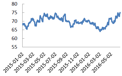 2015-2016 年5 月Cotlook 指數(美分/磅)